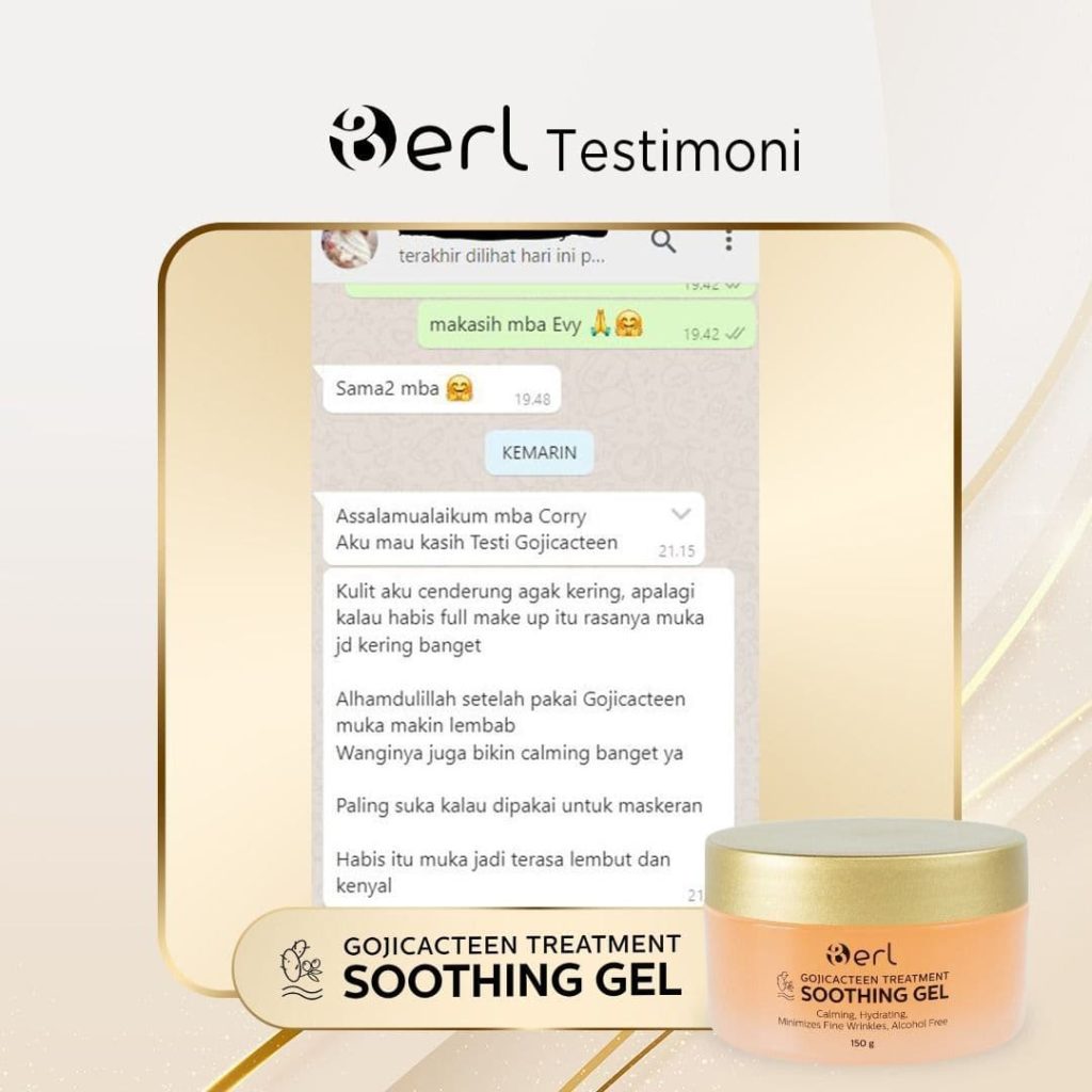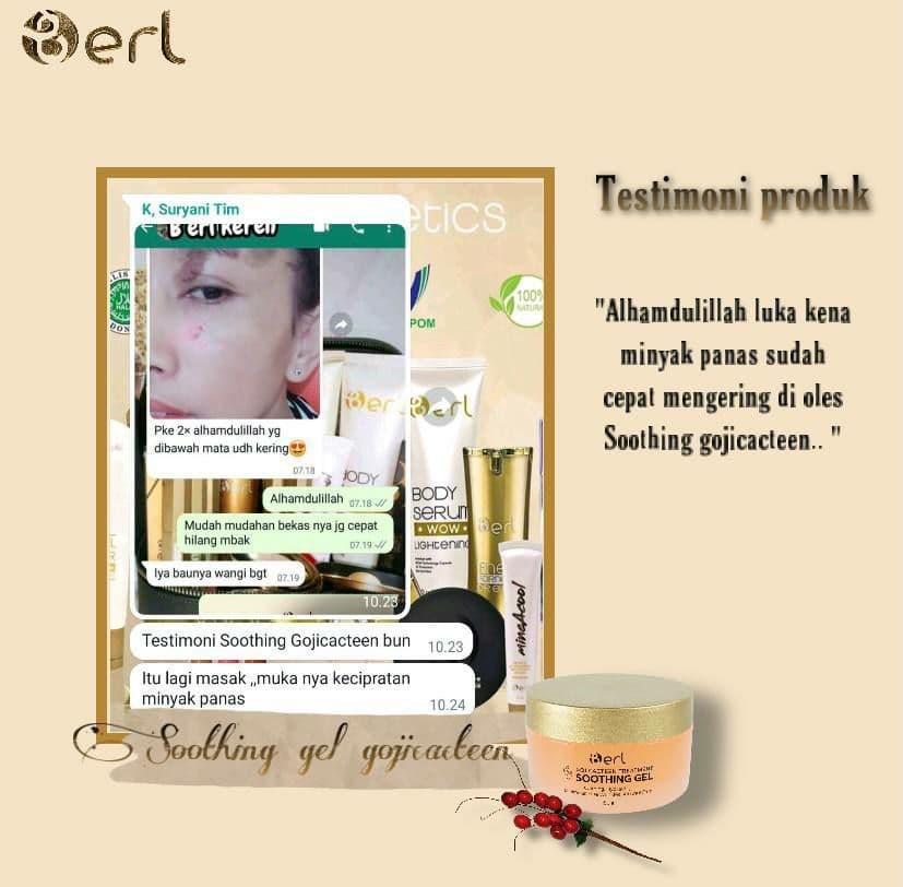 Berdasarkan testimoni pengguna dari GojiCacteen Soothing Gel serta hasil survey yang sudah kami lakukan kepada konsumen setia produk B Erl Cosmetics rata-rata akan mengalami perubahan baik pada kulit wajah sesudah pemakaian selama 2 minggu ke atas.