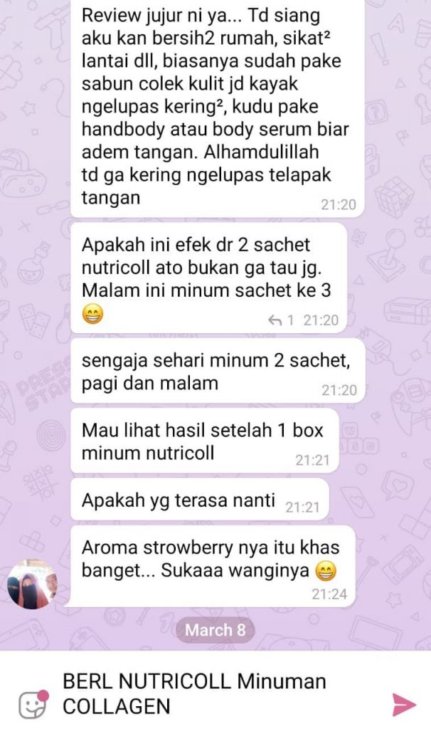 B Erl Nutricoll adalah suplemen kolagen yang diperkaya kandungan strawberry di dalamnya.