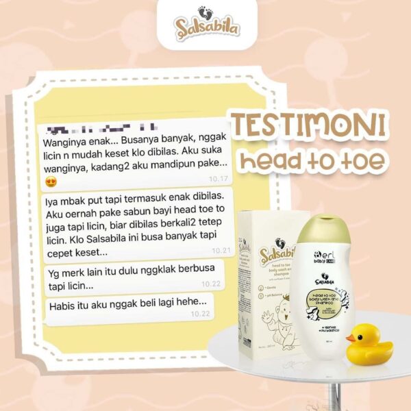 Salsabila Head To Toe Body wash & Shampoo ini dilengkapi kandungan “Sunflower Oil” yang membantu melembabkan kulit bayi dan menjadikan rambut bayi makin lebat dan berkilau walaupun habis dibotakin, menghidrasi dan yang paling penting, cocok untuk kulit bayi yang cenderung sensitif.