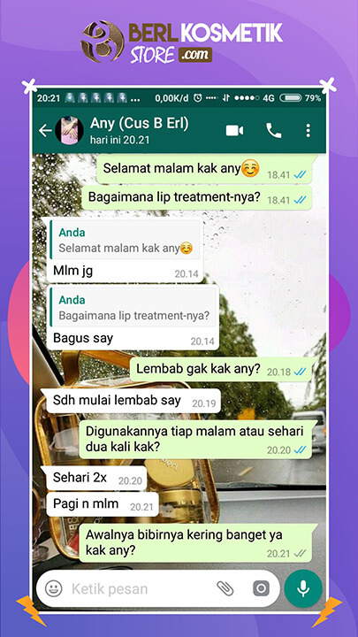 Jadi, meskipun itu produk alamipun, terkadang kulit akan menolaknya. Nah, maka dari itu sebelum Anda menggunakan produk B Erl Lip Treatment bisa konsultasi terlebih dahulu ke penjual atau seller resmi B Erl Cosmetic.